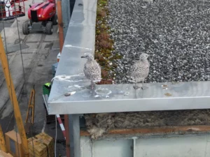 Einschätzung zu Nistplätzen #2: 2 Jung-Möwen auf einem Kiesdach im Riverside Zuchwil. Dieses Kiesdach bietet den Jung-Möwen genügend Platz für eine erfolgreiche Jungenaufzucht. Auf eine Umquartierung kann verzichtet werden.